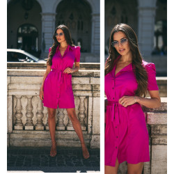 Rózsaszínű, fodros ujjú poly ruha, fodros szoknyarésszel. Hátrésze zárt. Rugalmas. Anyagösszetétel: 35% polyester, 65% viscose, 5% elasthan