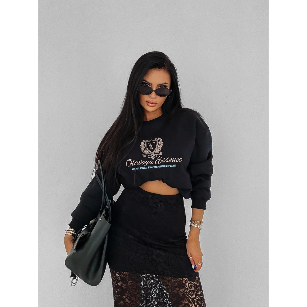 OLAVOGA fekete színű pamut pulóver, elején hímzett és nyomtatott...