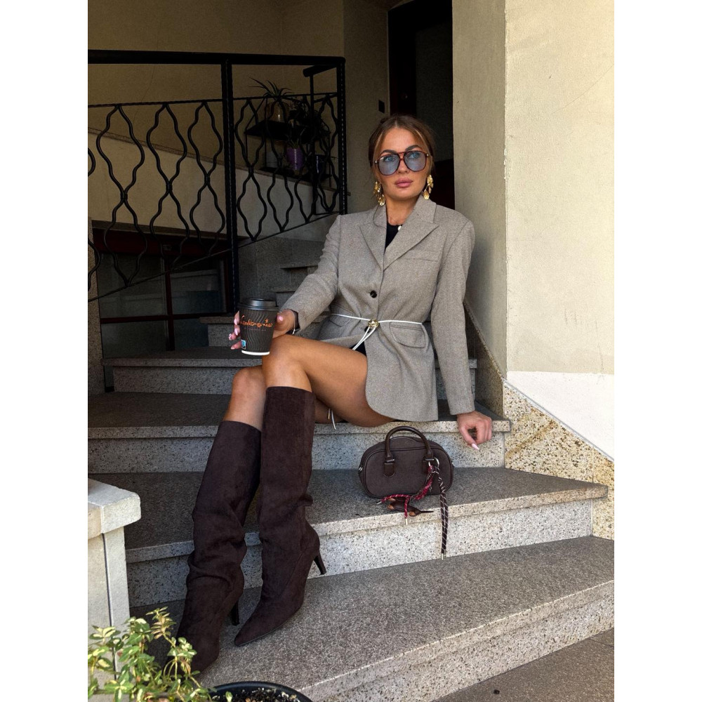 OLAVOGA barna-fehér halszálka mintás, oversize fazonú, szövet blézer, ujján logós címkével.