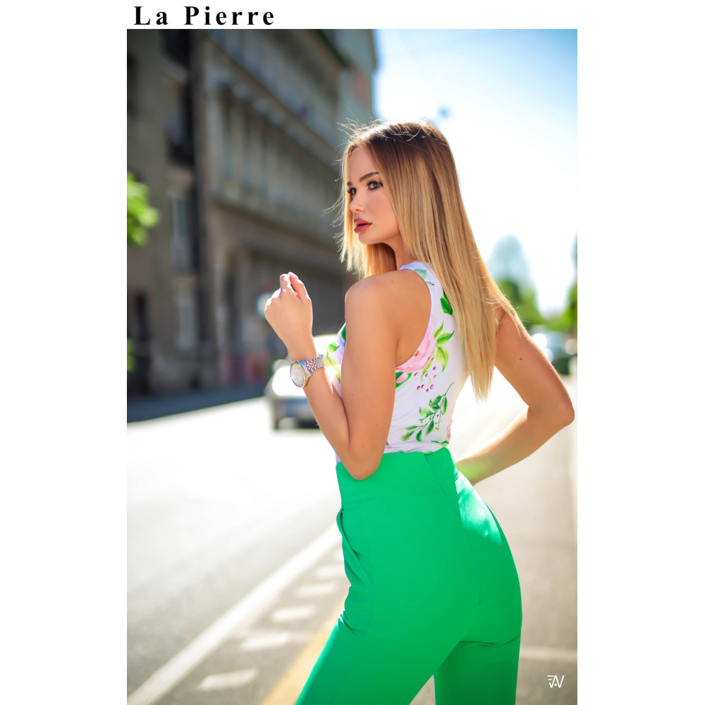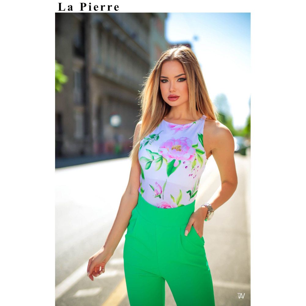 La Pierre fehér alapon virág mintás poly body. Hátrésze zárt. Rugalmas.