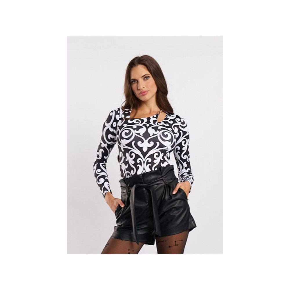 Envy fekete-fehér barokk mintás, nyakán arany láncos, hosszú ujjú body....