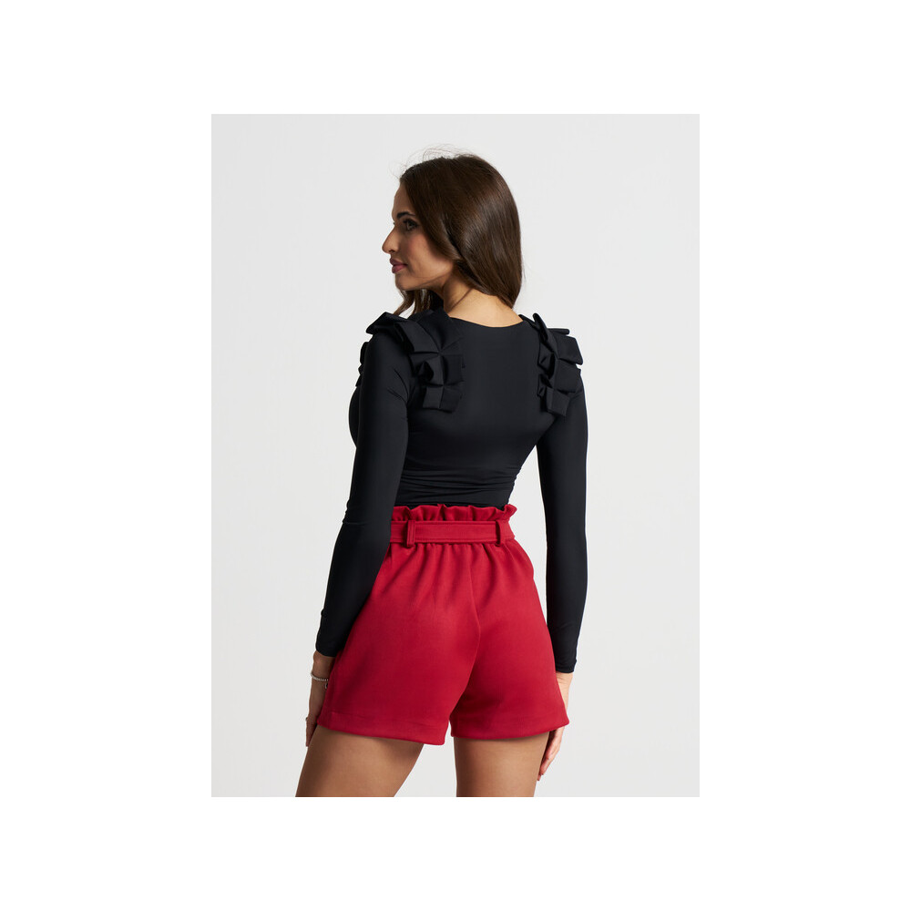 La Pierre fekete short, derekán kötővel. Derékrésze gumírozott....