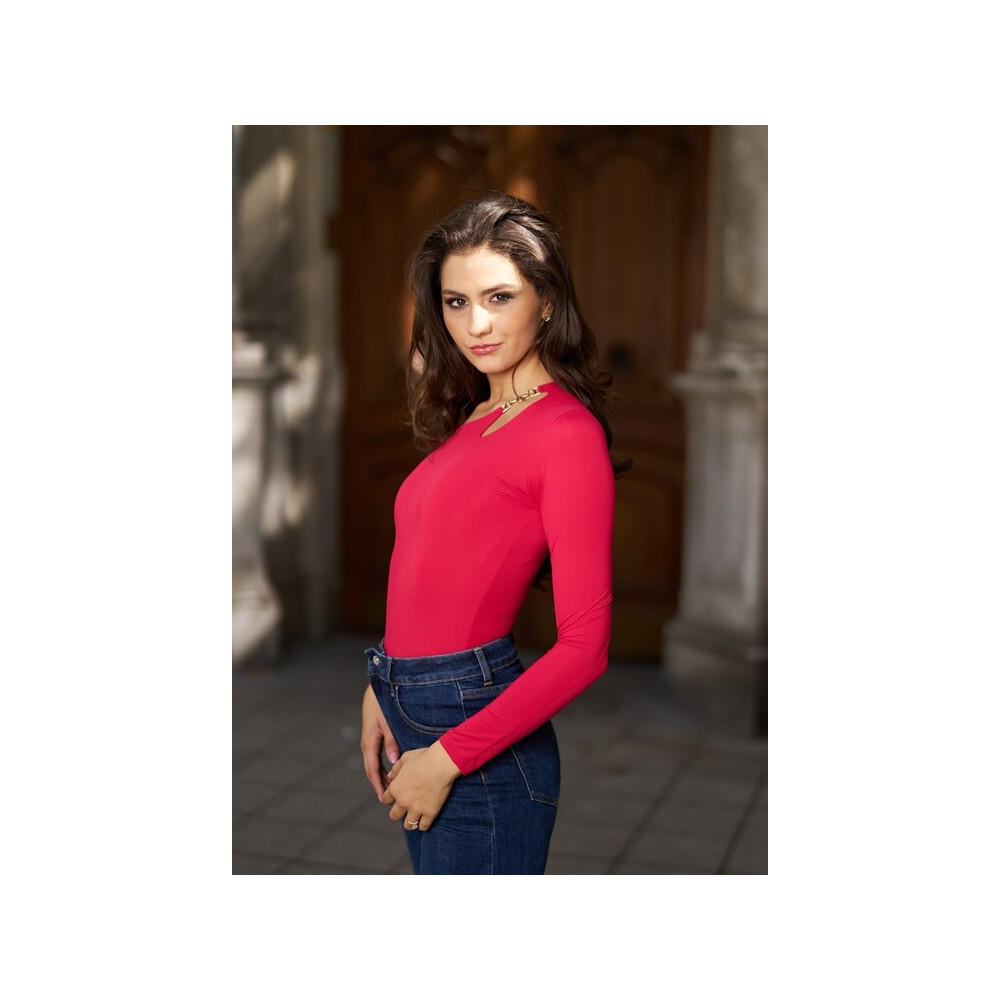 Envy málna színű, nyakán arany láncos, hosszú ujjú body....