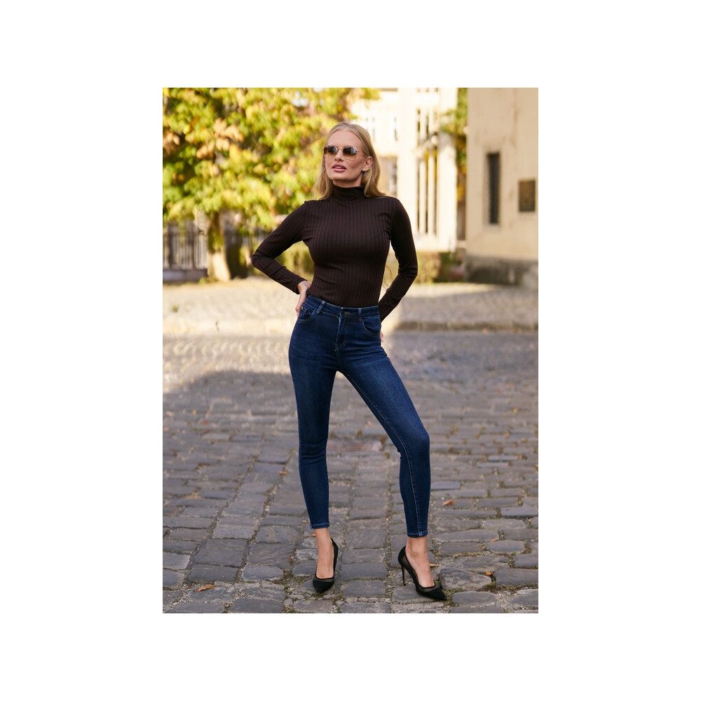 Envy sötétbarna színű félgarbós, hosszú ujjú bordás anyagú felső. Rugalmas.