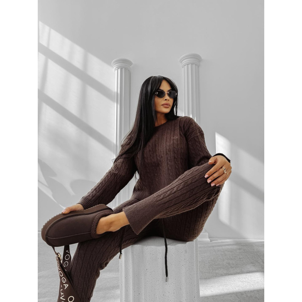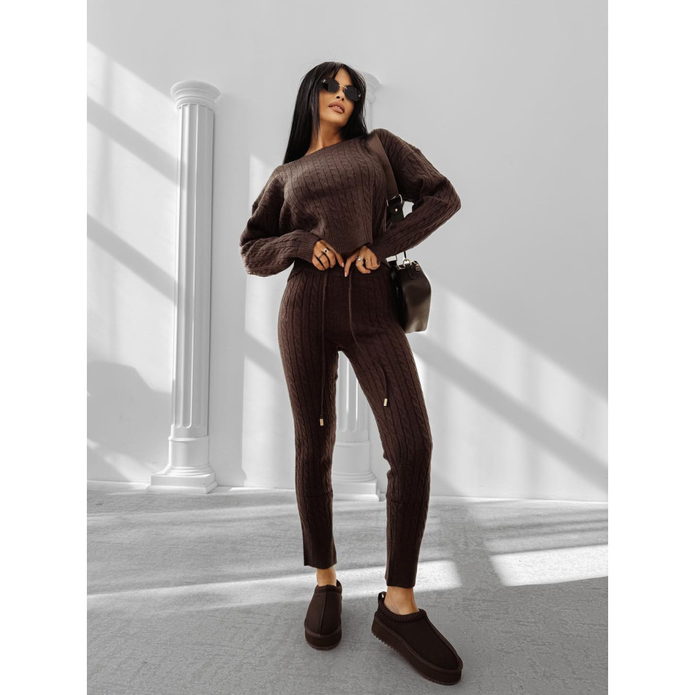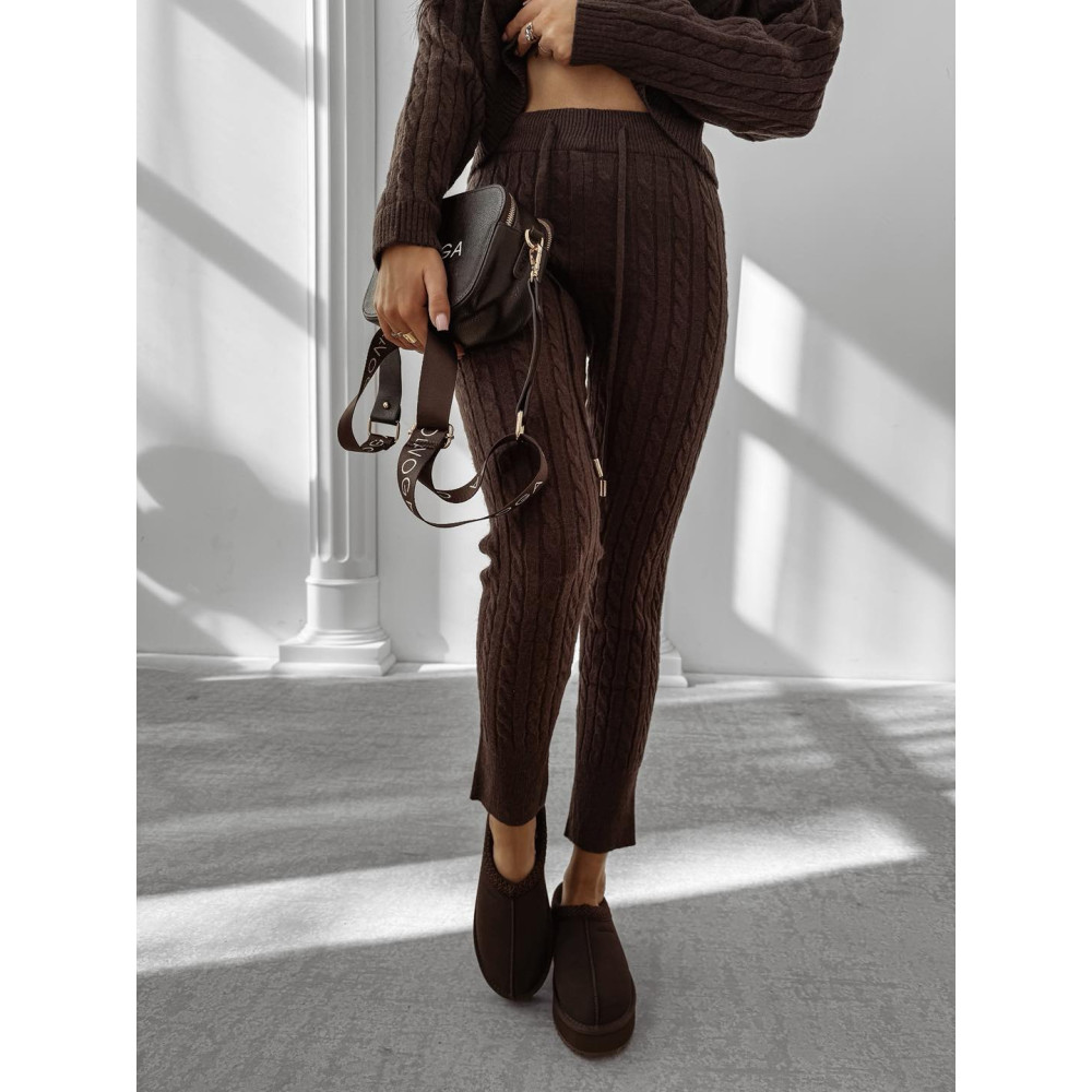 OLAVOGA csokibarna színű, csavart mintás kötött garnitúra, a nadrág...