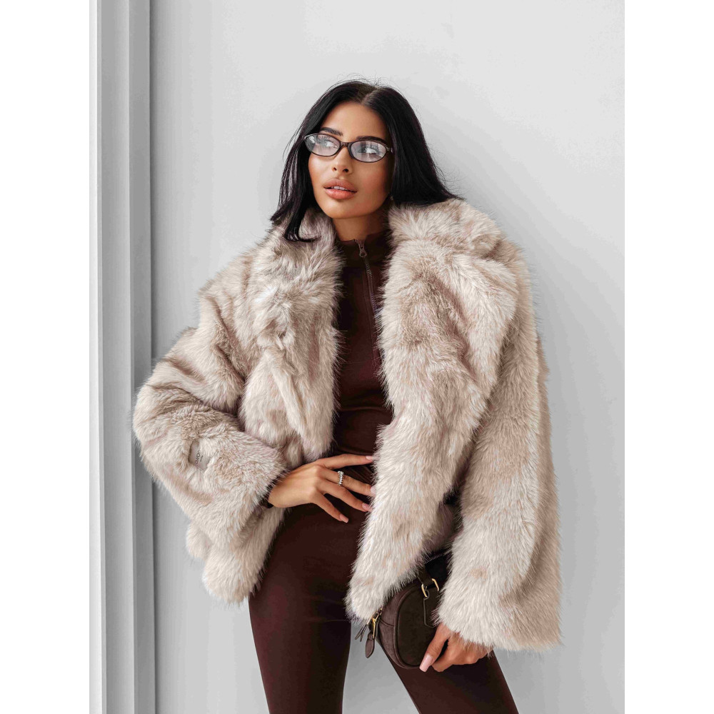 OLAVOGA bézs színű szőrme kabát. Anyagösszetétel: 100% poliészter.