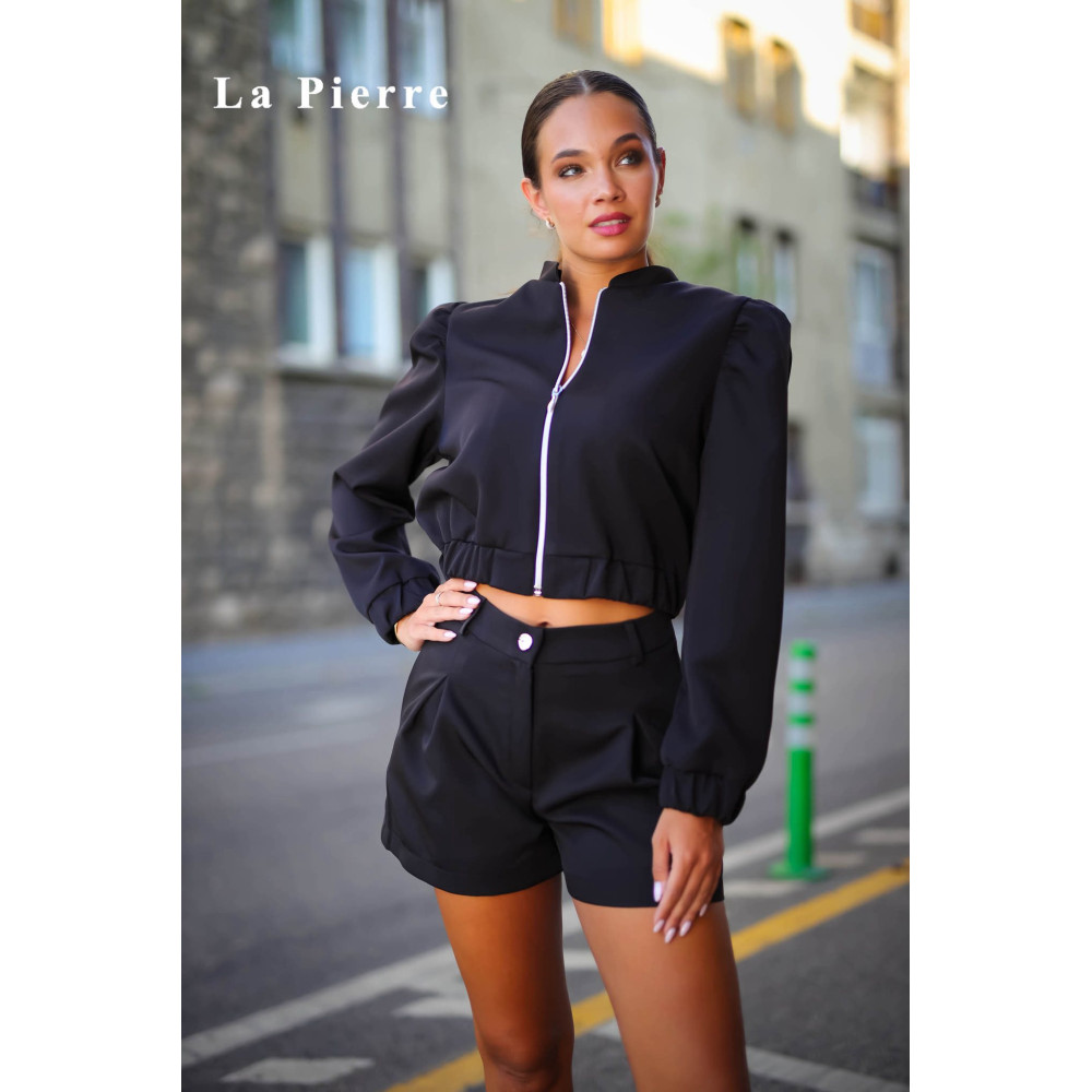 La Pierre fekete kabát, ujján és az alján gumírozott.