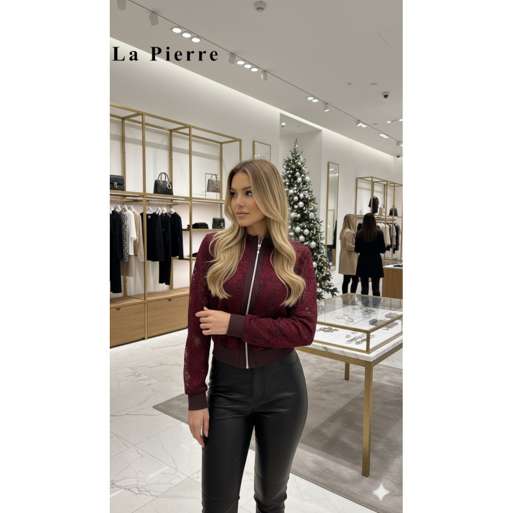 La Pierre bordó csipke kabát, ujján és az alján passzé résszel. Rugalmas.