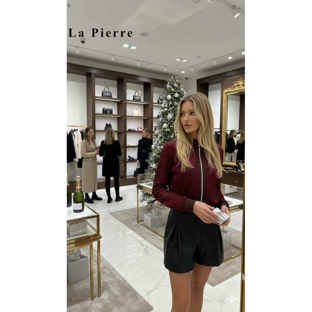 La Pierre bordó csipke kabát, ujján és az alján passzé résszel....