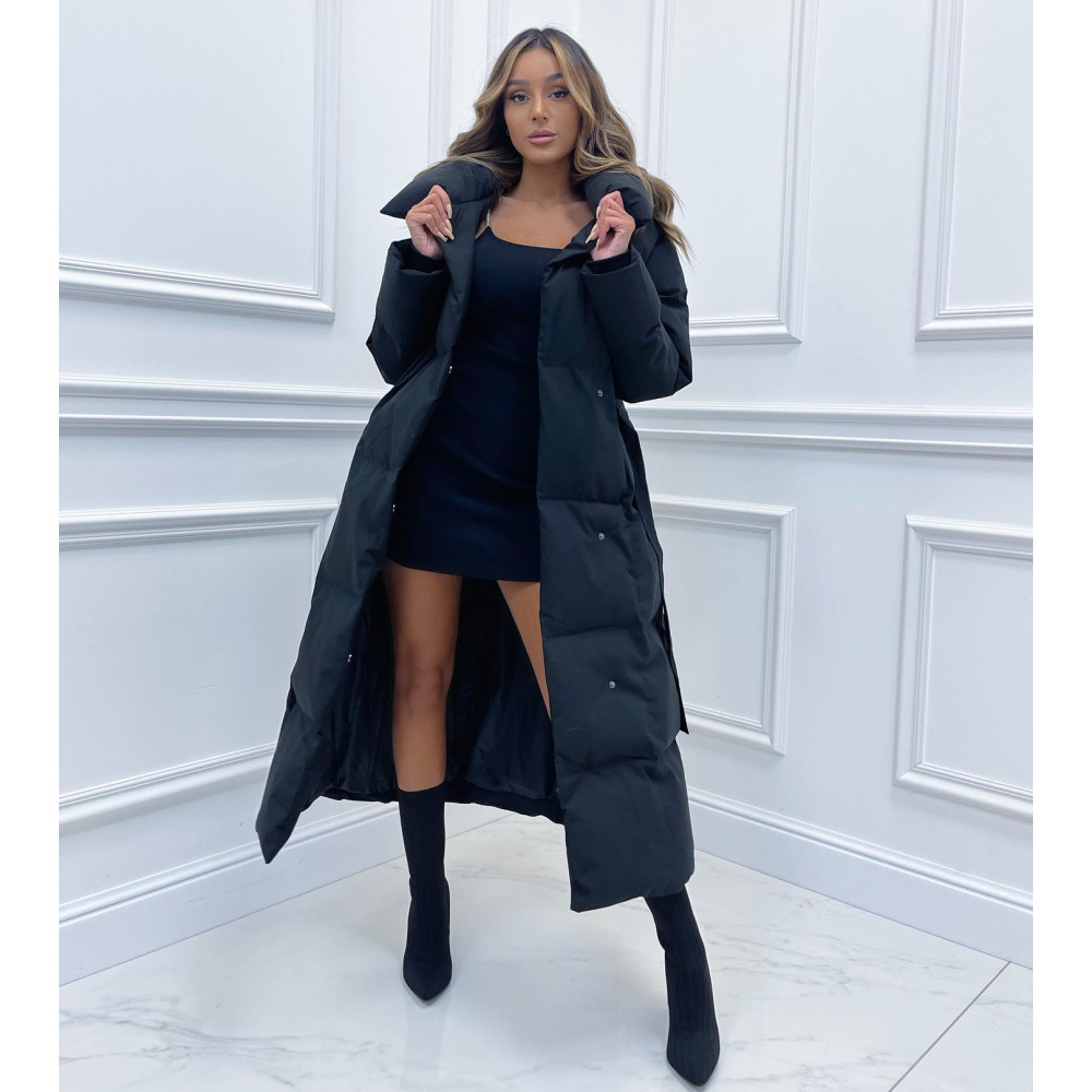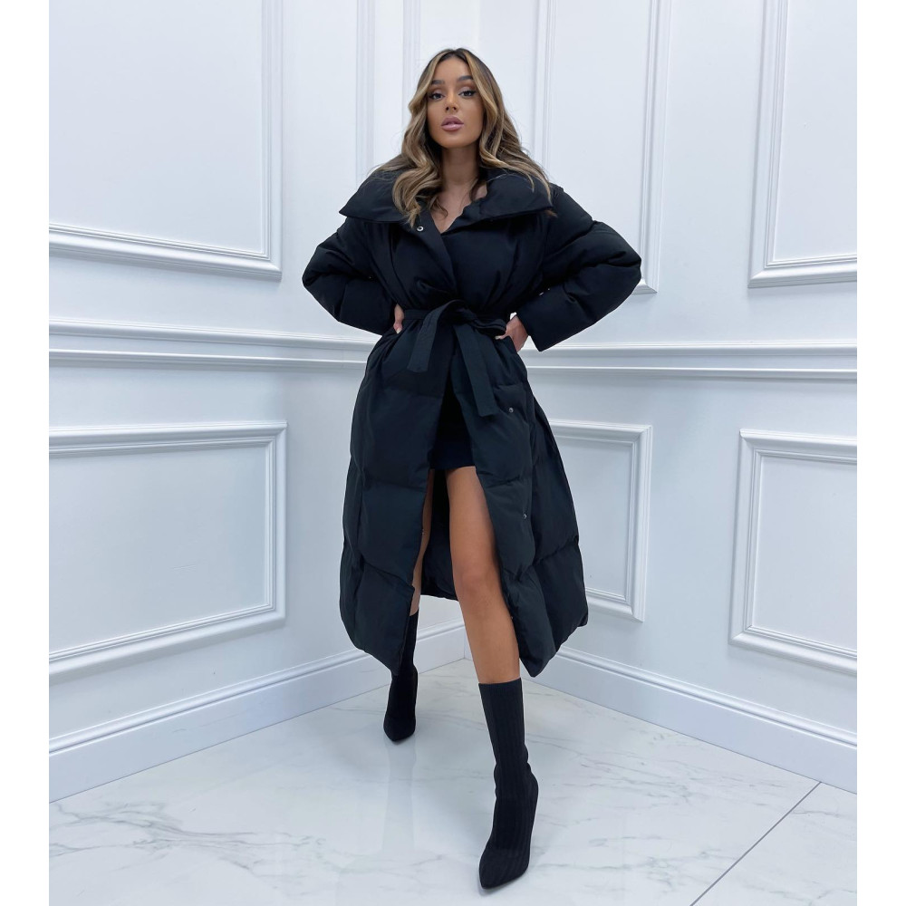 Fekete színű OVERSIZE pufi kabát övvel, vatelin béléssel. Elöl végig patentos a belső oldalán.