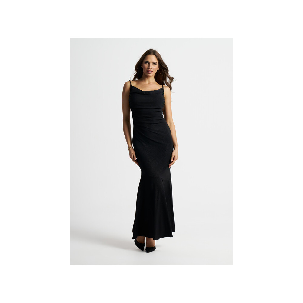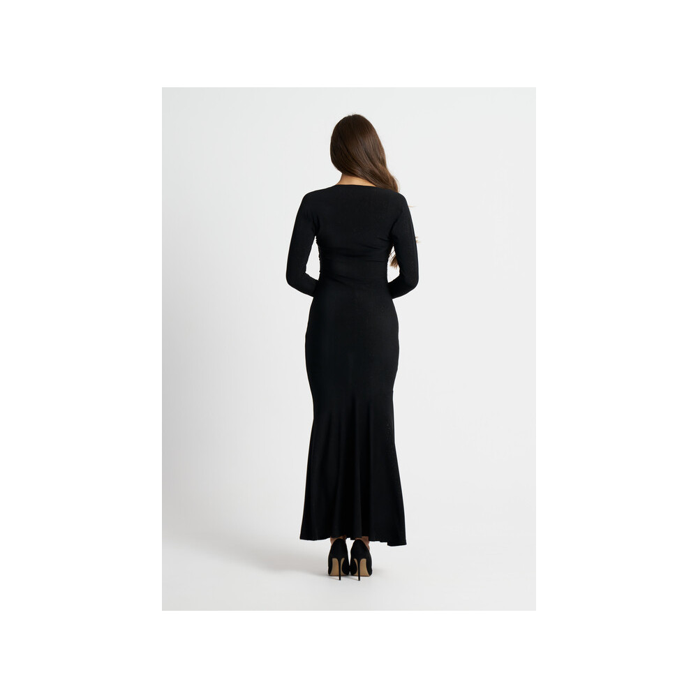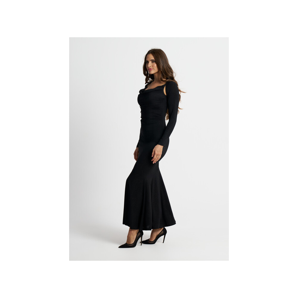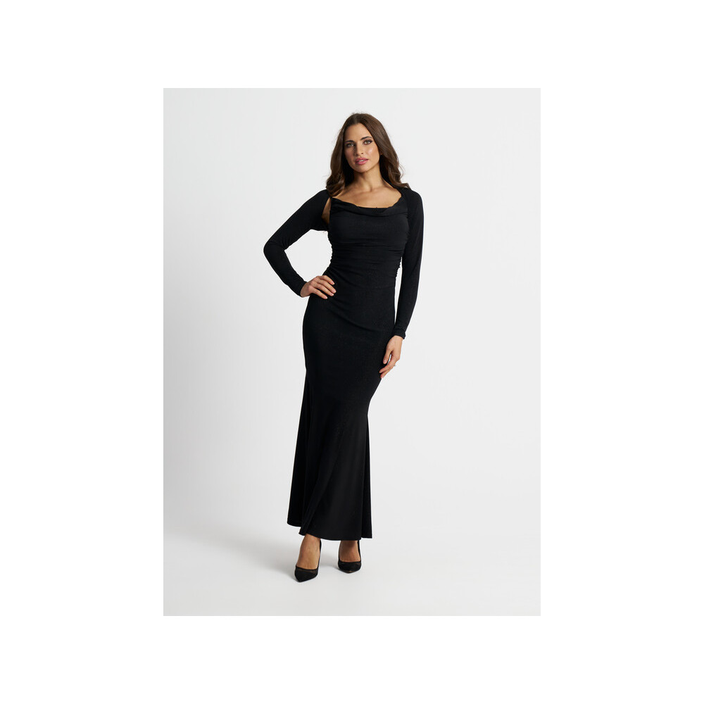 Envy fekete színű, csillogó, oldalán húzott maxi ruha, boleróval....