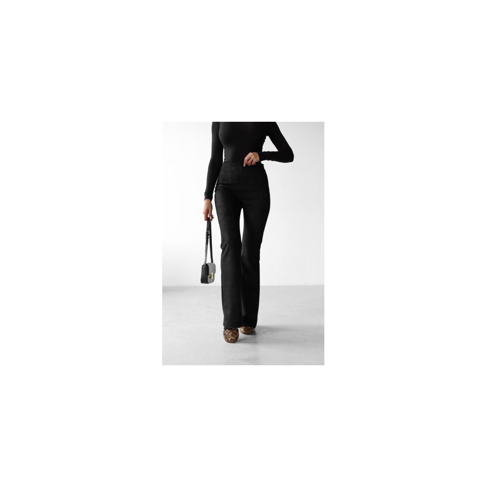 Fekete színű magas derekú, bő szárú kötött nadrág, derekán kötővel....