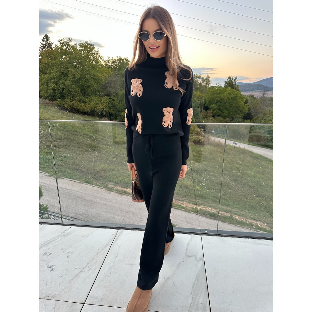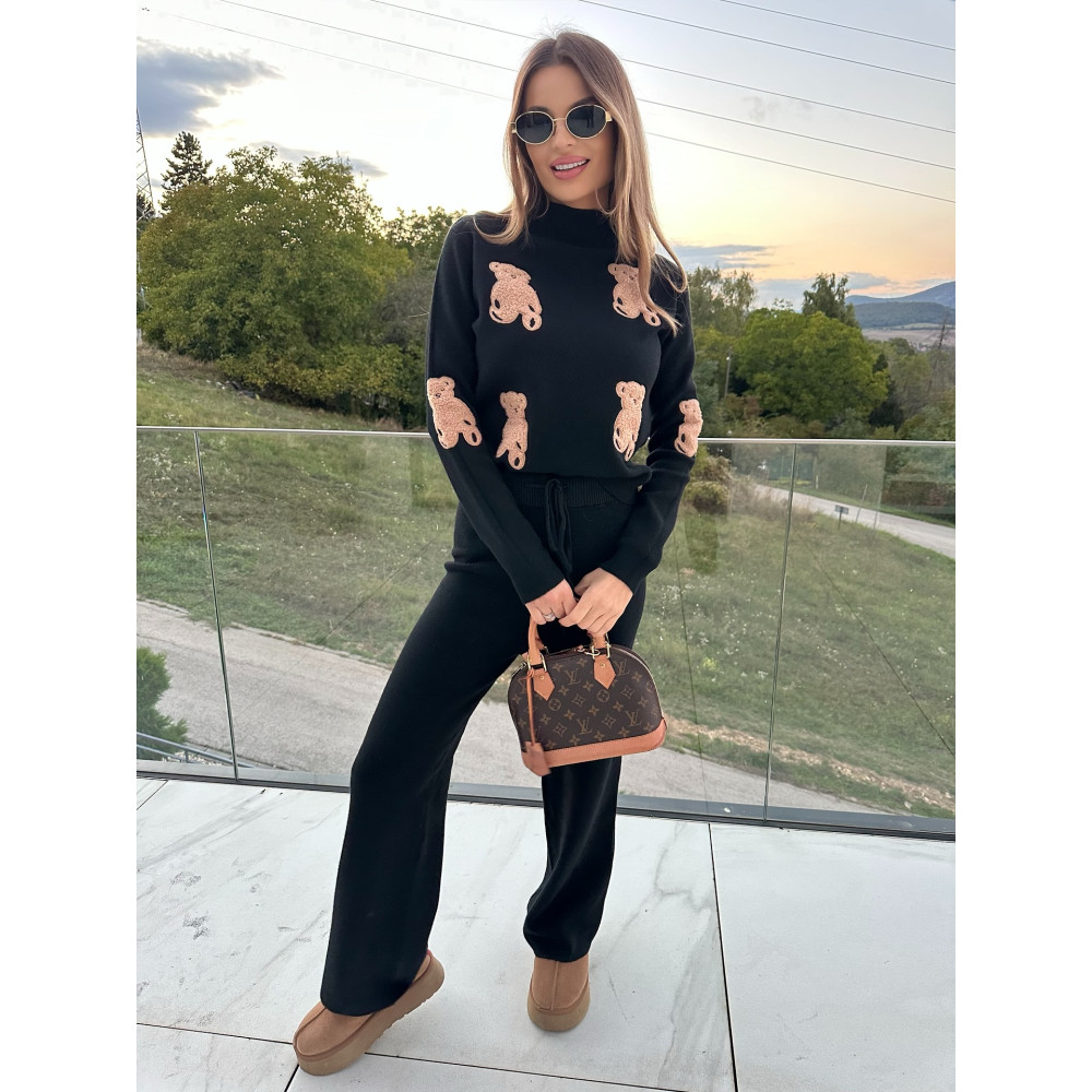 OLAVOGA csokibarna színű, csavart mintás kötött garnitúra, a nadrág...