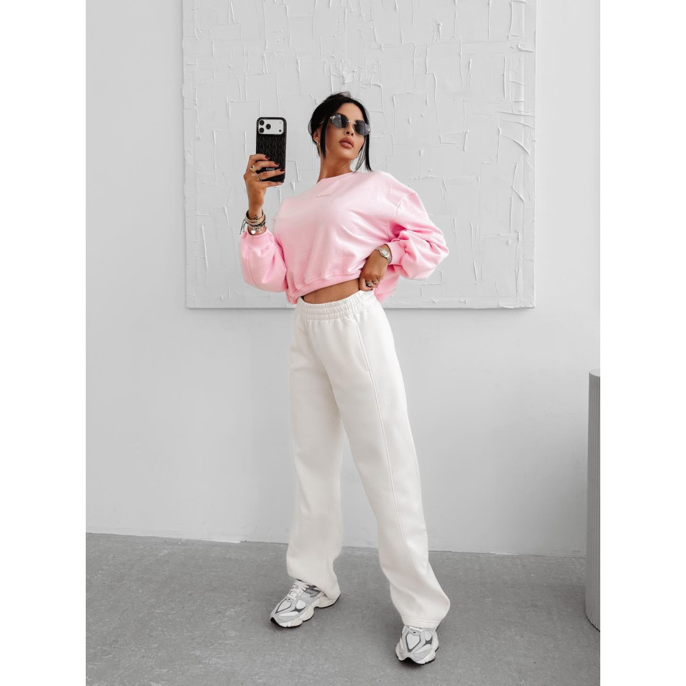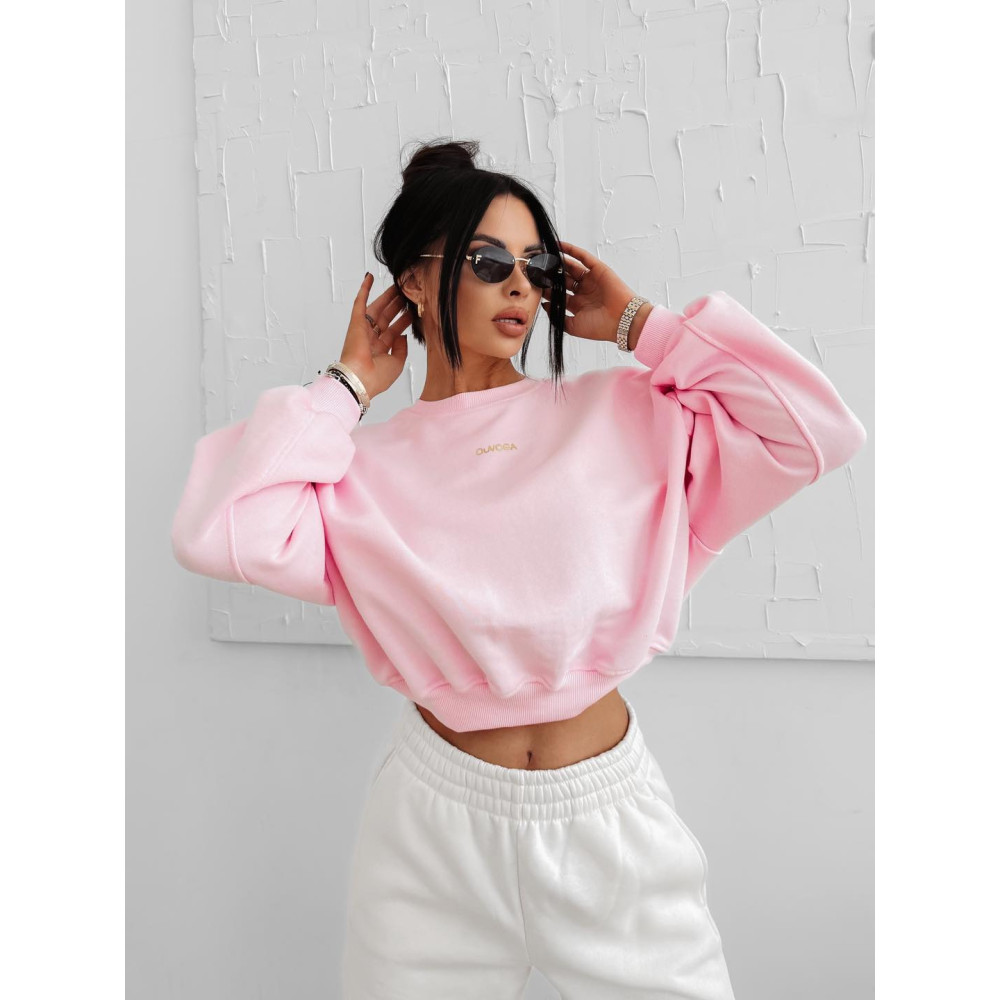 OLAVOGA világos pink színű pamut pulóver, elején nyomtatott arany logóval, alján és ujján passzéval.