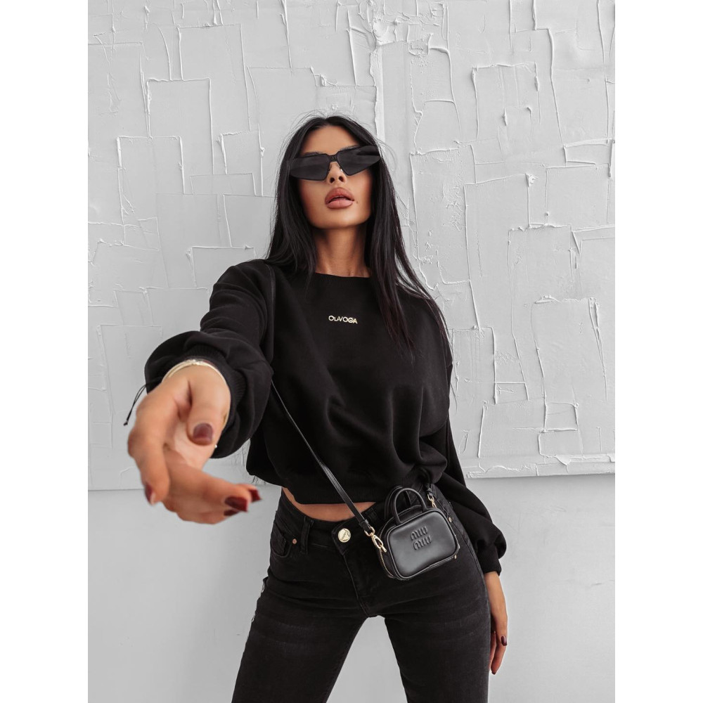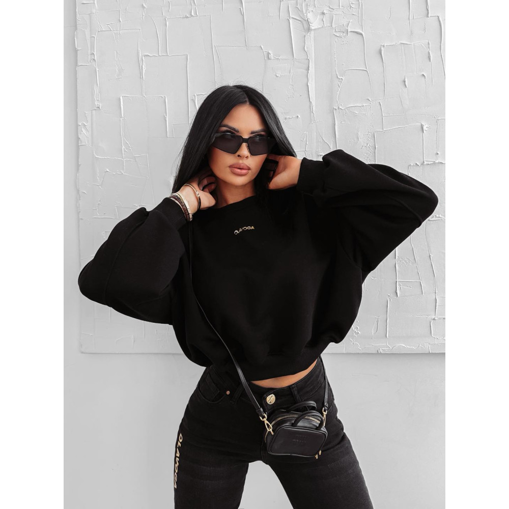 OLAVOGA fekete színű pamut pulóver, elején nyomtatott arany logóval, alján és ujján passzéval.