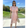 Rózsaszín csipke maxiruha övvel, végig gyöngy gombos. Anyag: 80%...