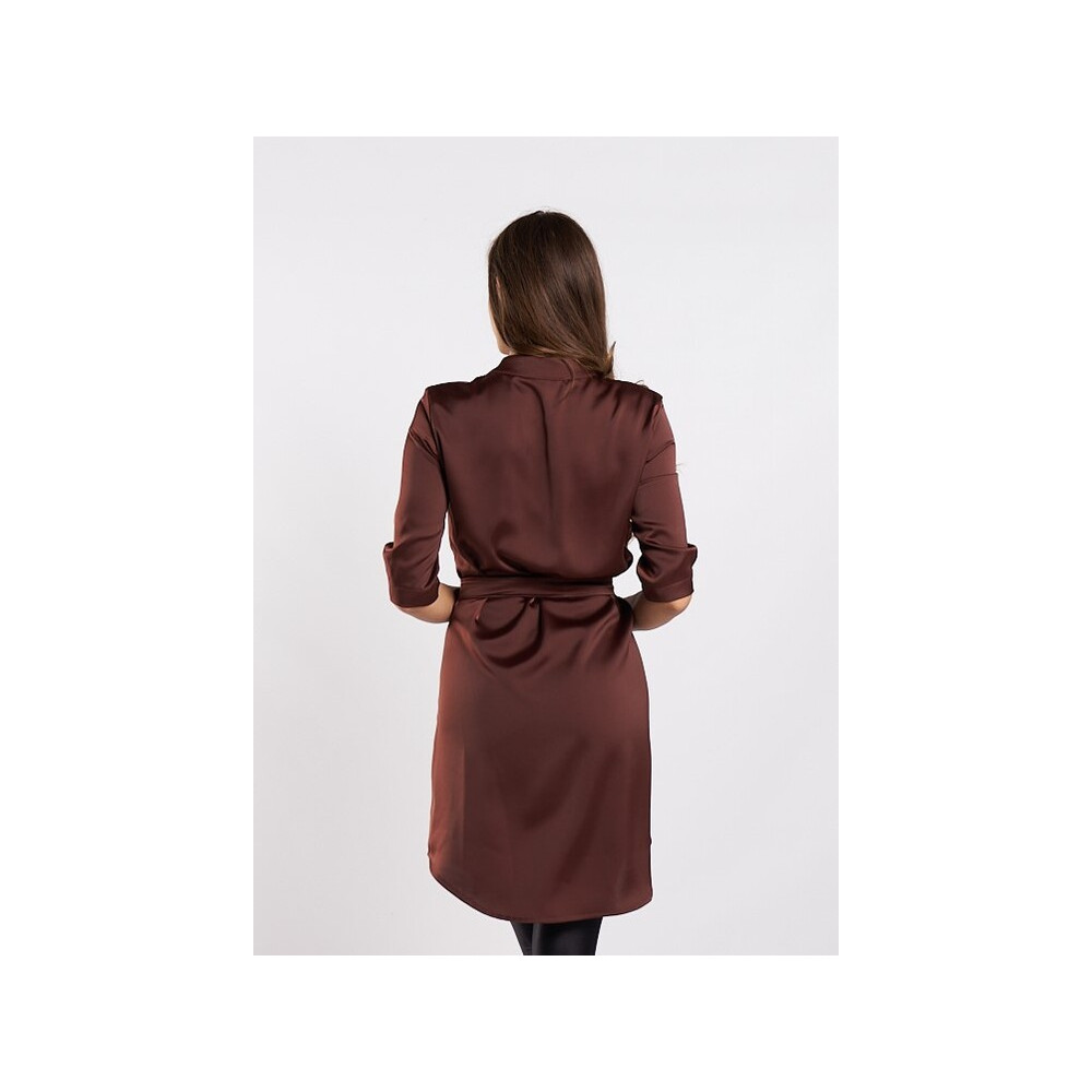 Envy 3/4-es ujjú barna színű, A-vonalú szatén ruha, derekán kötővel....
