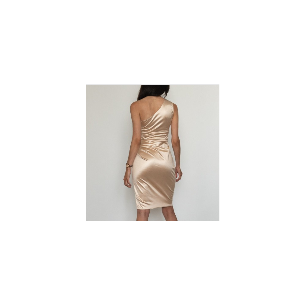 Arany színű oldalt húzott, elöl sliccelt szatén miniruha. Oldalán...